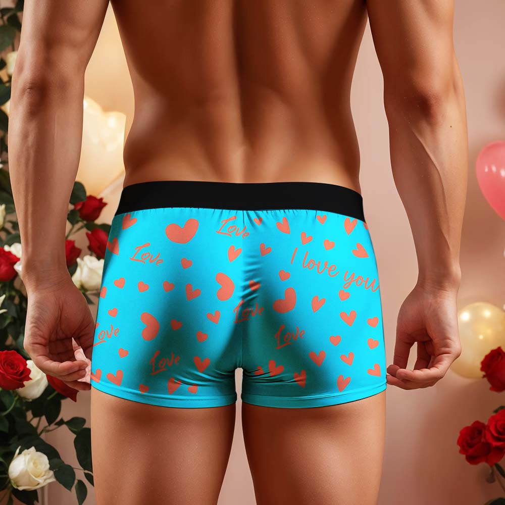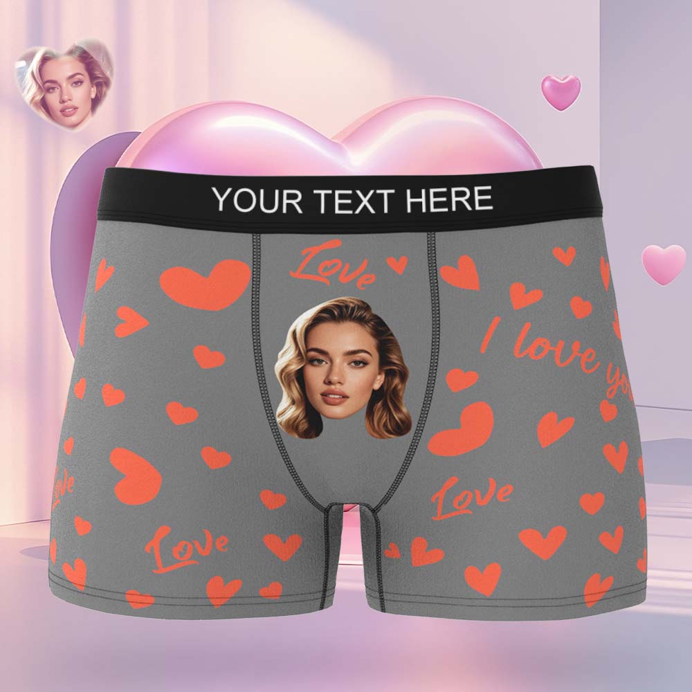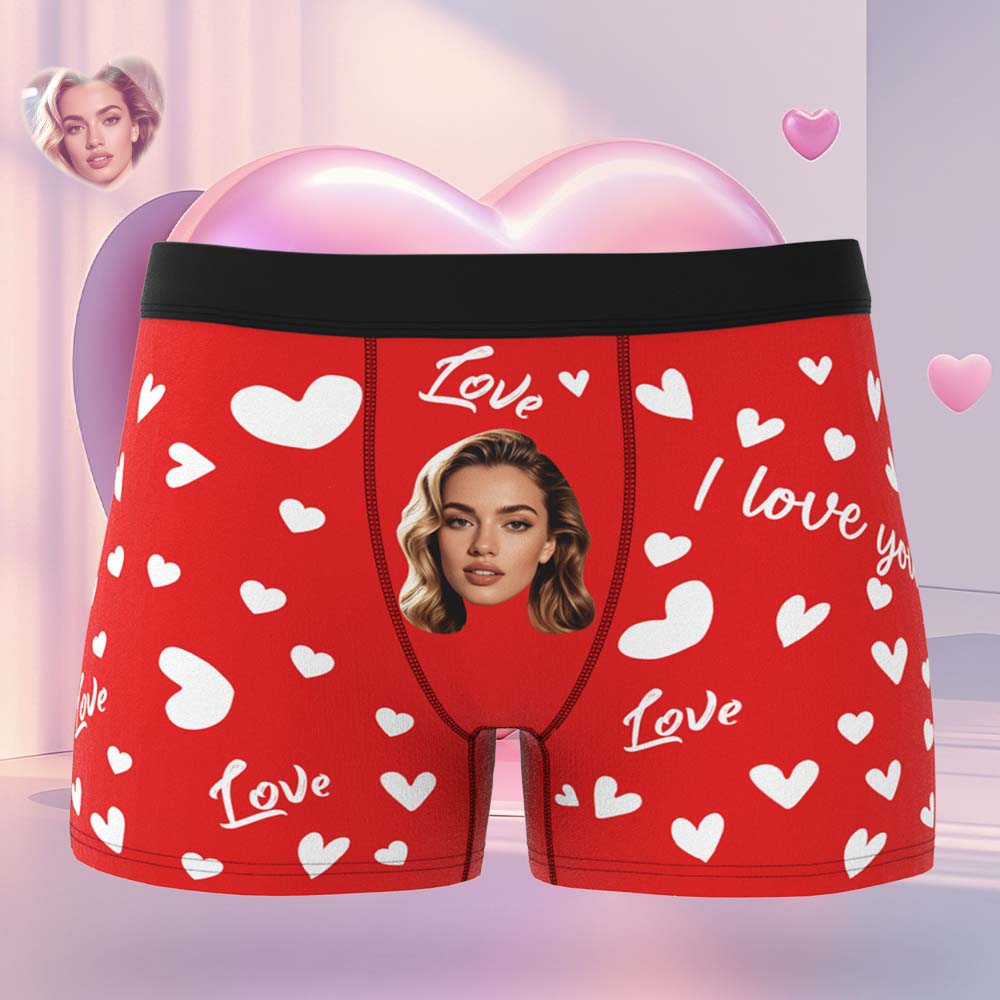 Custom Men's Face Boxer Underwear Personalized Boxer Briefs with Heart Pattern Special Present for Valentine's Day