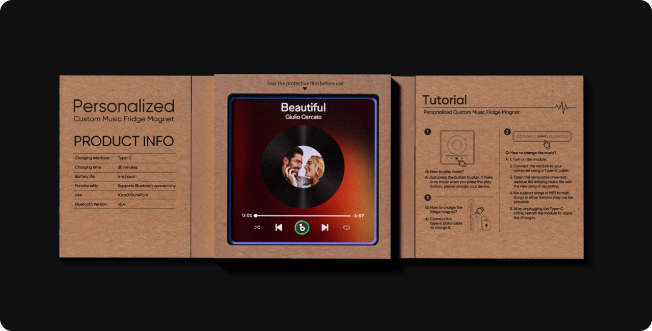 Bring your favorite music to life with our Customized Album Fridge Magnet! This innovative magnet is more than just a decorative piece; it's a functional, interactive device that lets you play your favorite songs directly from your fridge. Whether you want to listen to a relaxing playlist while cooking or enjoy your favorite music while grabbing a snack, this fridge magnet makes it all possible.