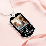 Make a unique and memorable gift for her/him, any Holiday or special occasion with this customizable ID Tag. Just add your favorite picture at the front and a Music code with your selected song or a playlist on the back.