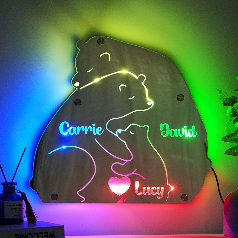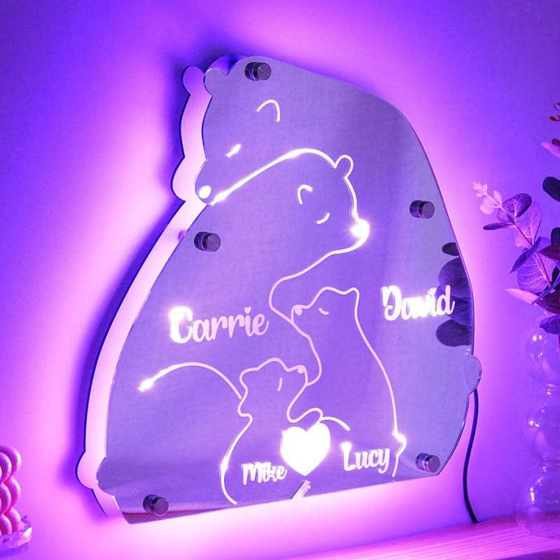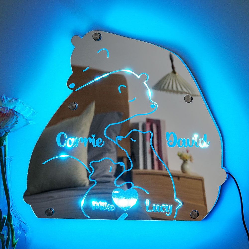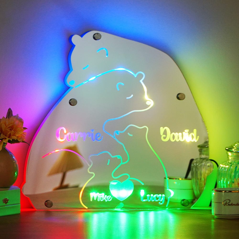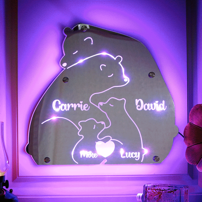 Custom Name Bear Family Mirror Light Personalized Gift for Family