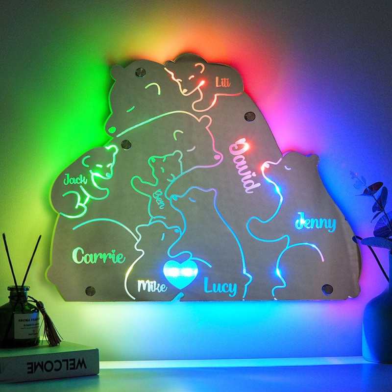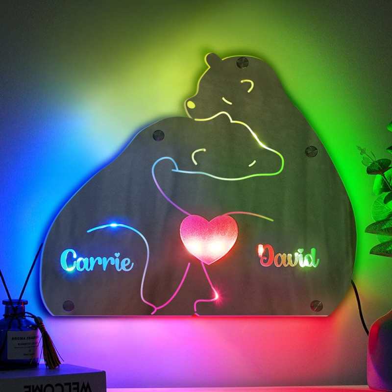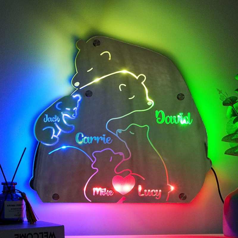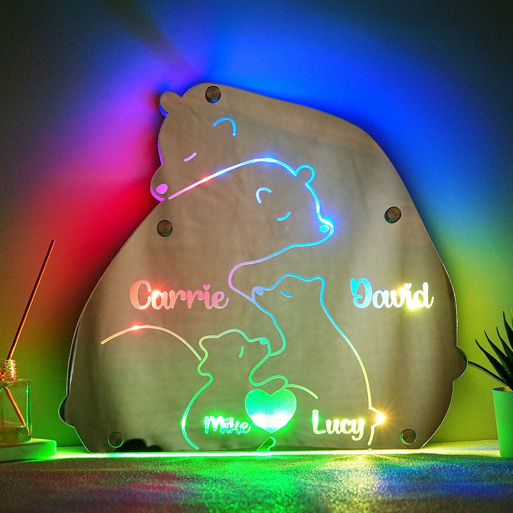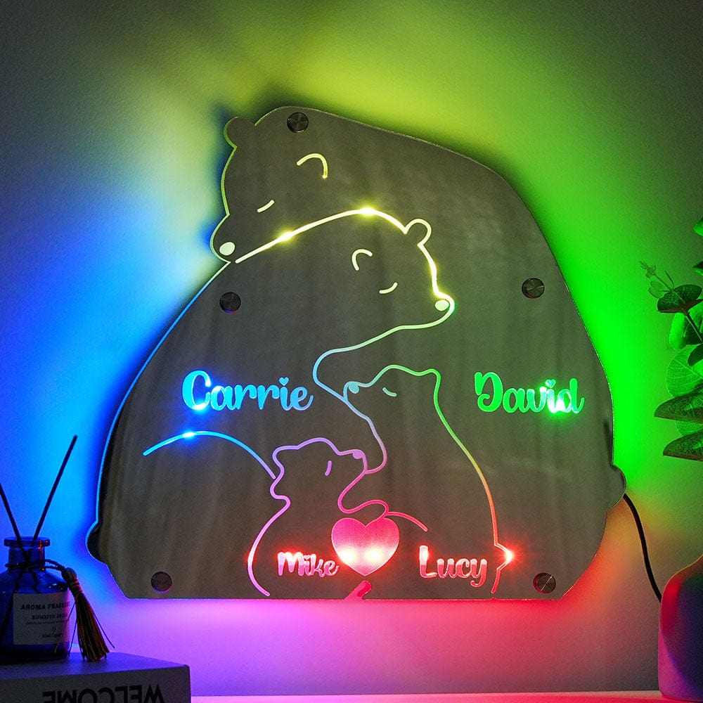 Custom Name Bear Family Mirror Light Personalized Gift for Family