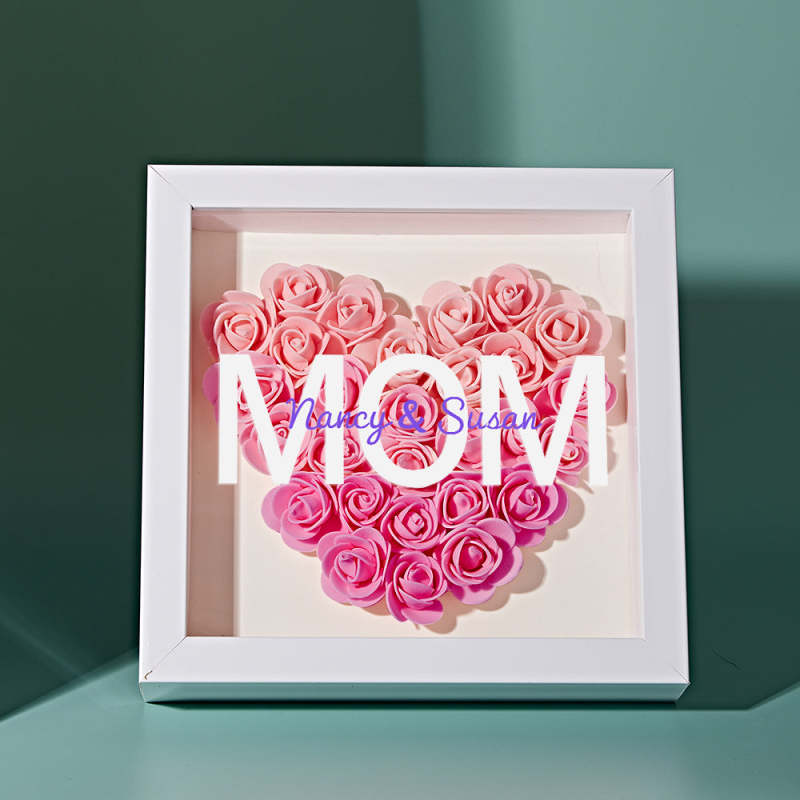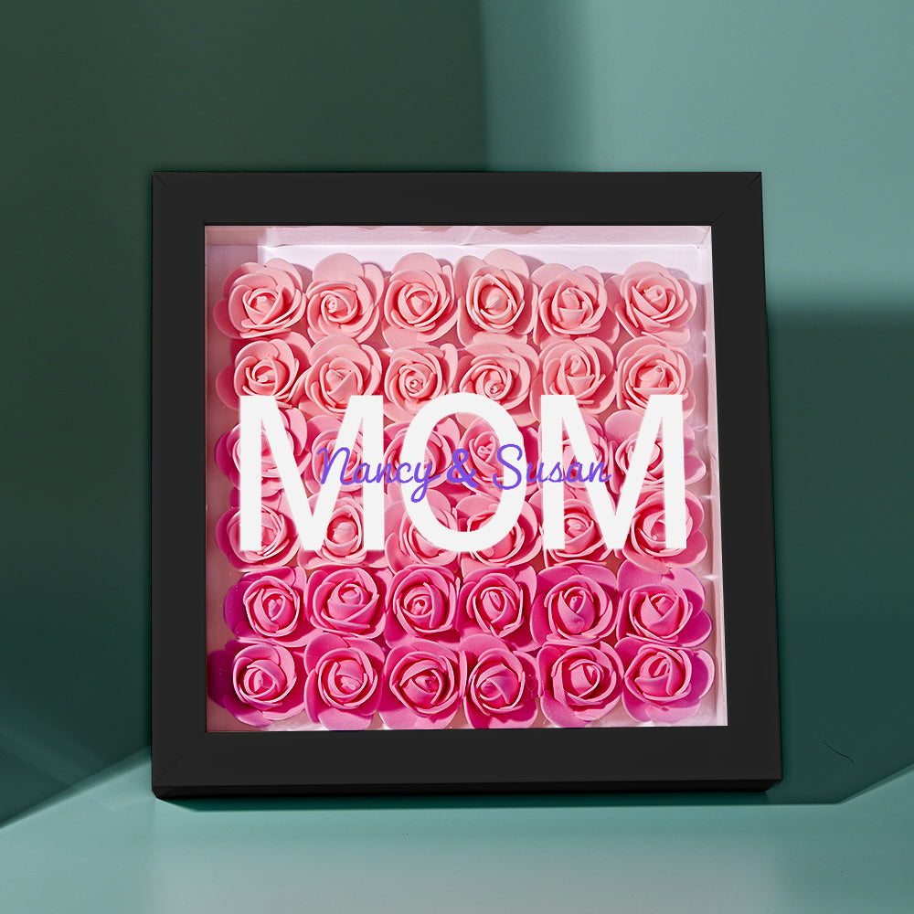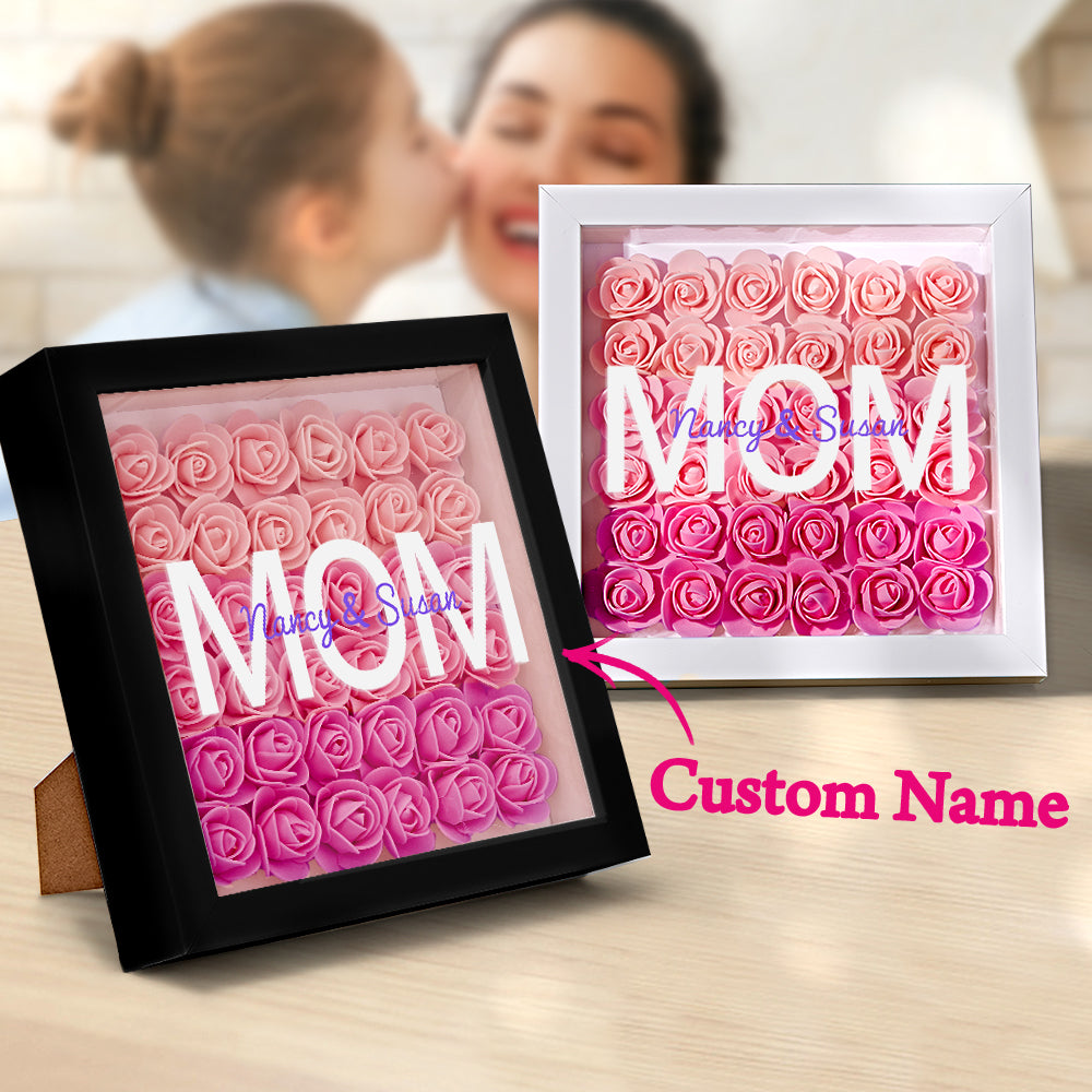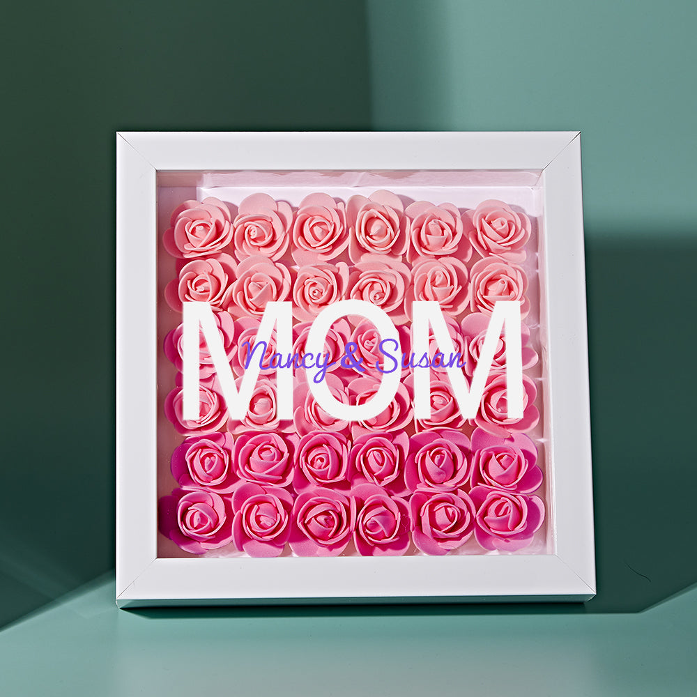 Custom Name Flower Shadow Box Personalized Gradient Pink Flower Shadowbox Frame Gift for Mom