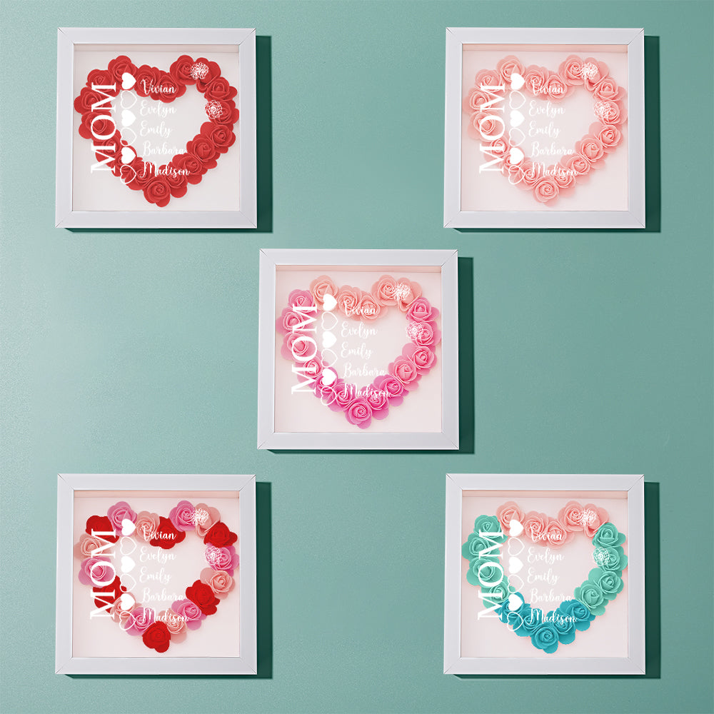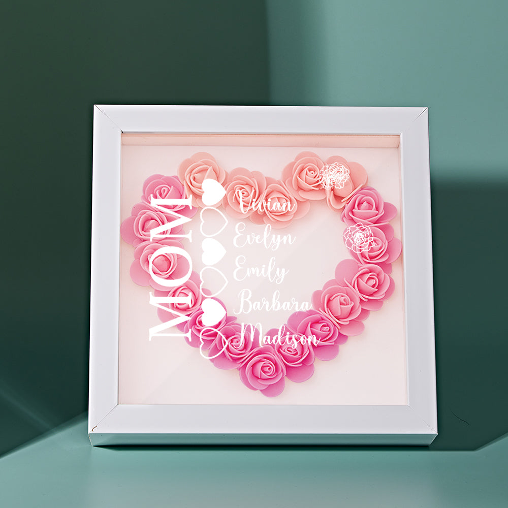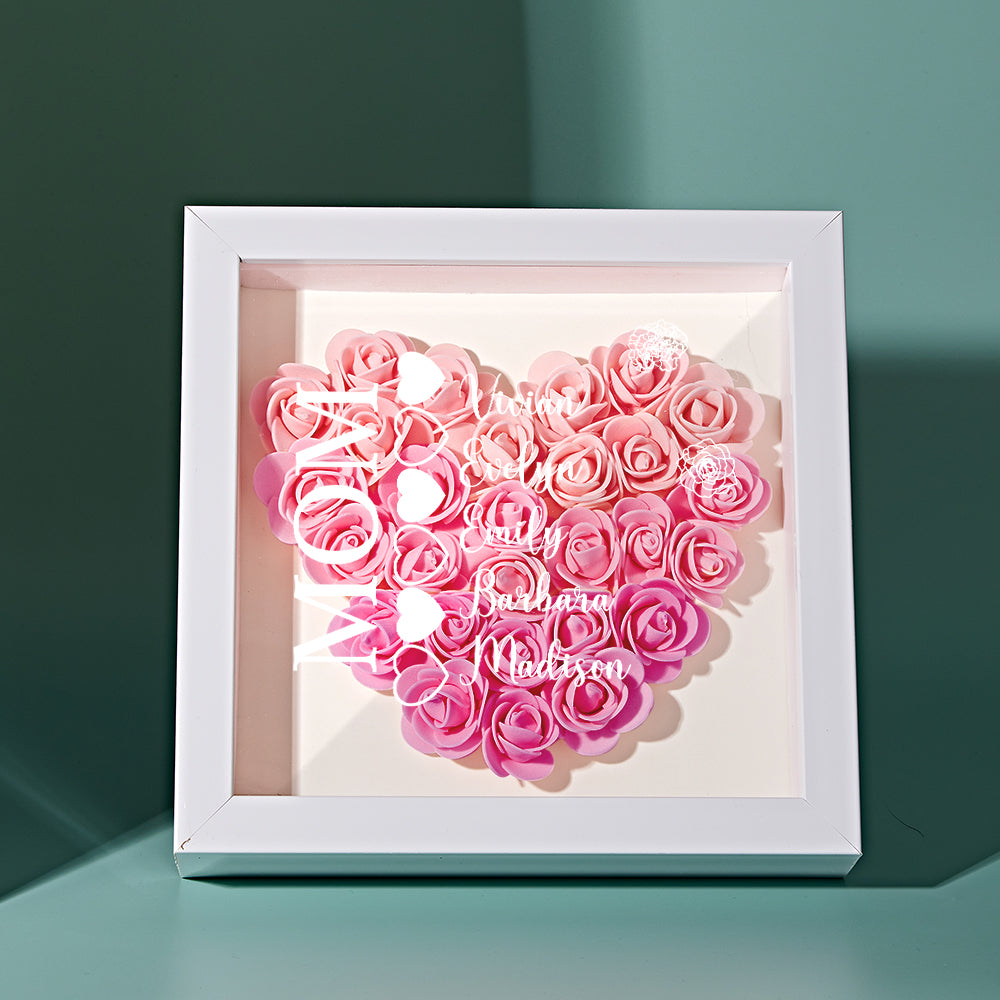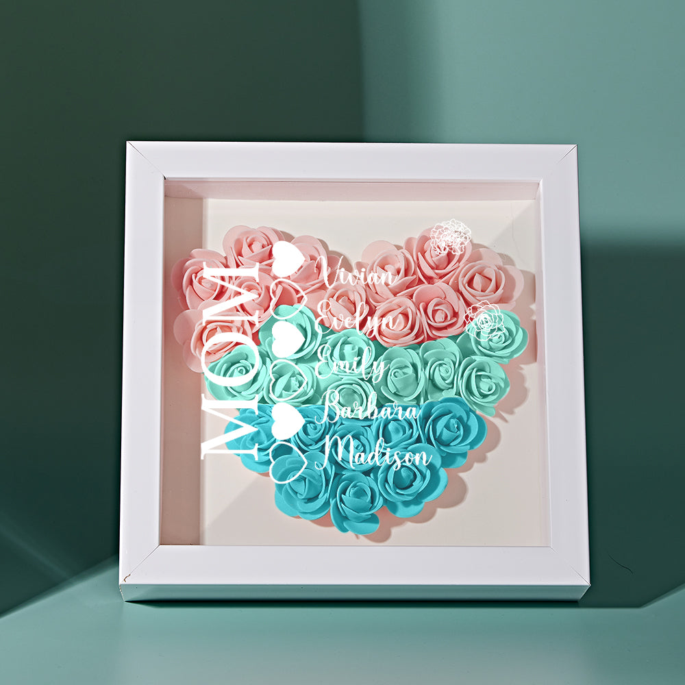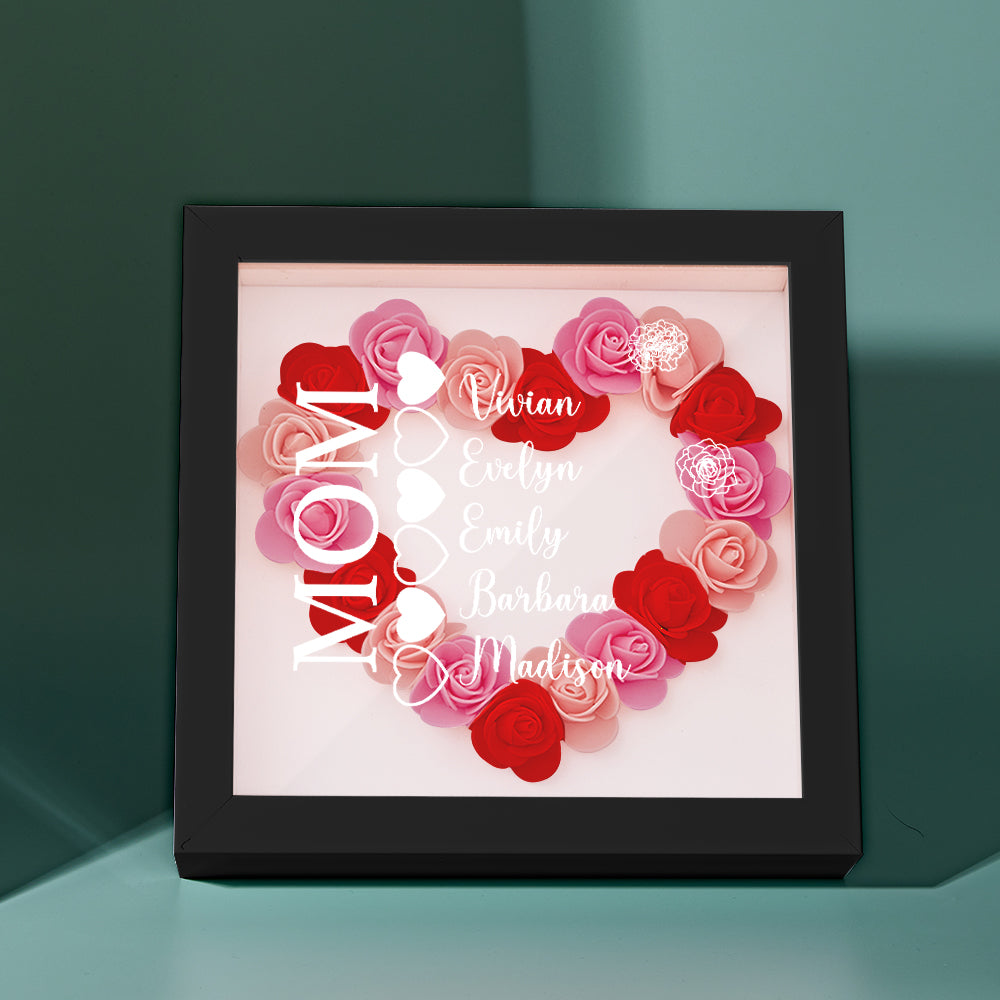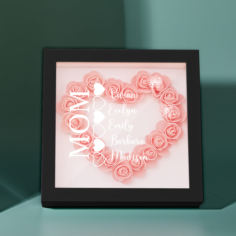 Custom Name Flower Shadow Box Personalized Heart Flower Shadowbox Frame Mother's Day Gift