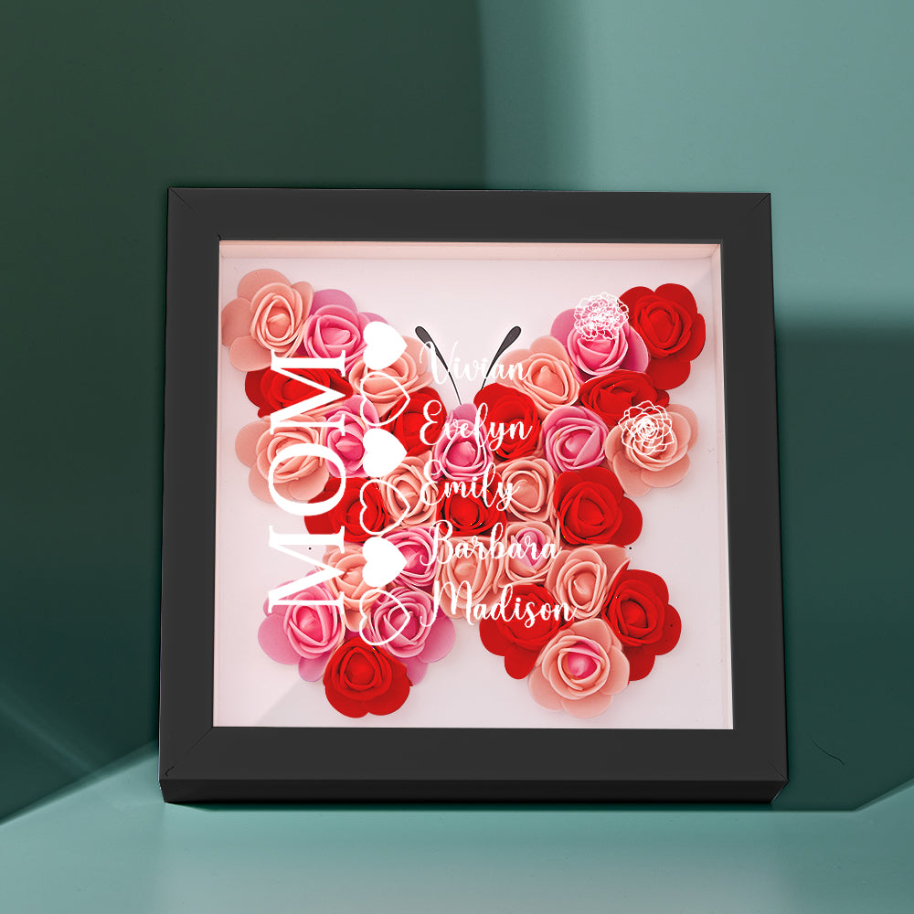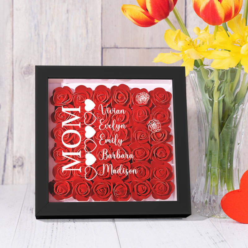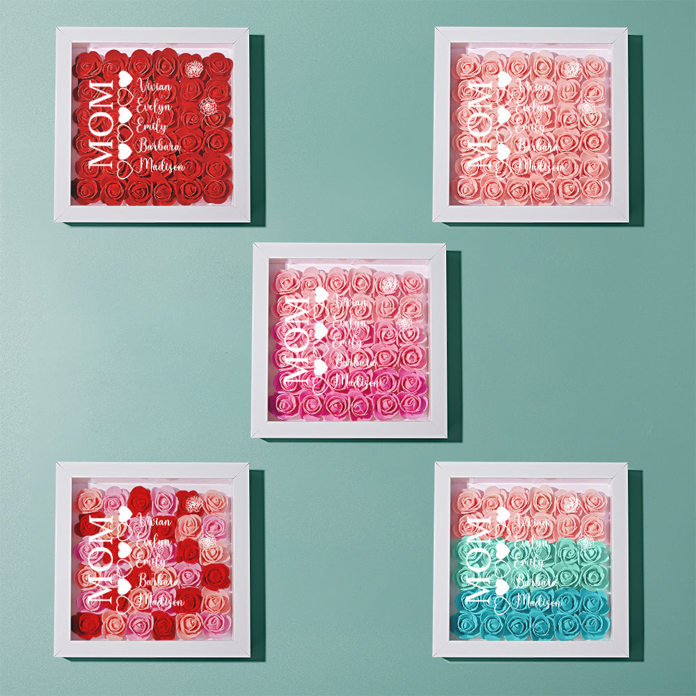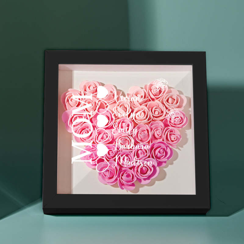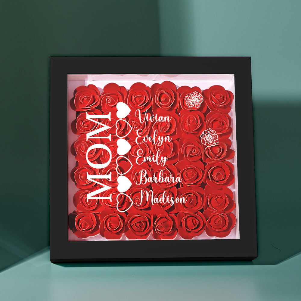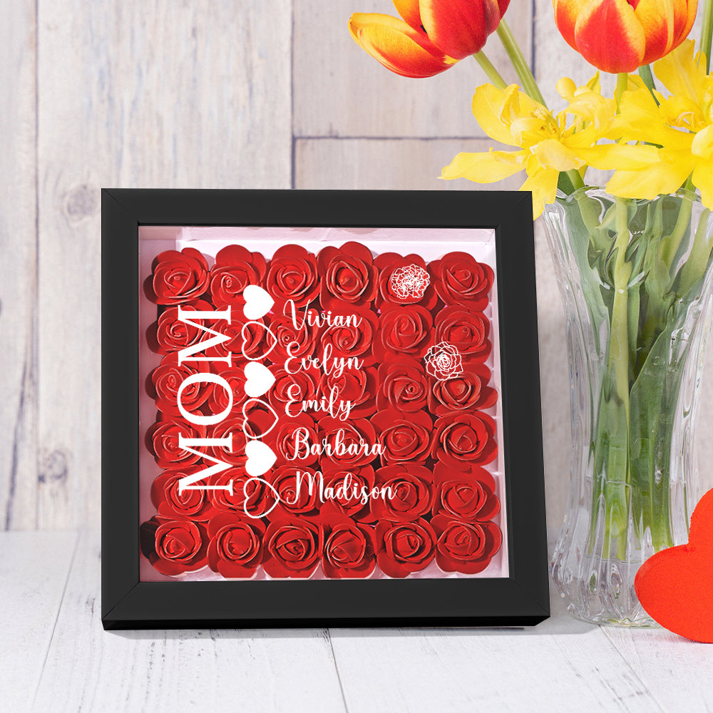 Custom Name Flower Shadow Box Personalized Heart Flower Shadowbox Frame Mother's Day Gift