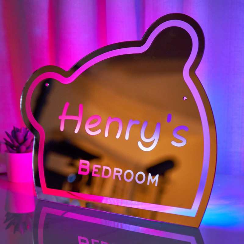 Custom Name Mirror Light Funny Children's Bedroom Bear Gift