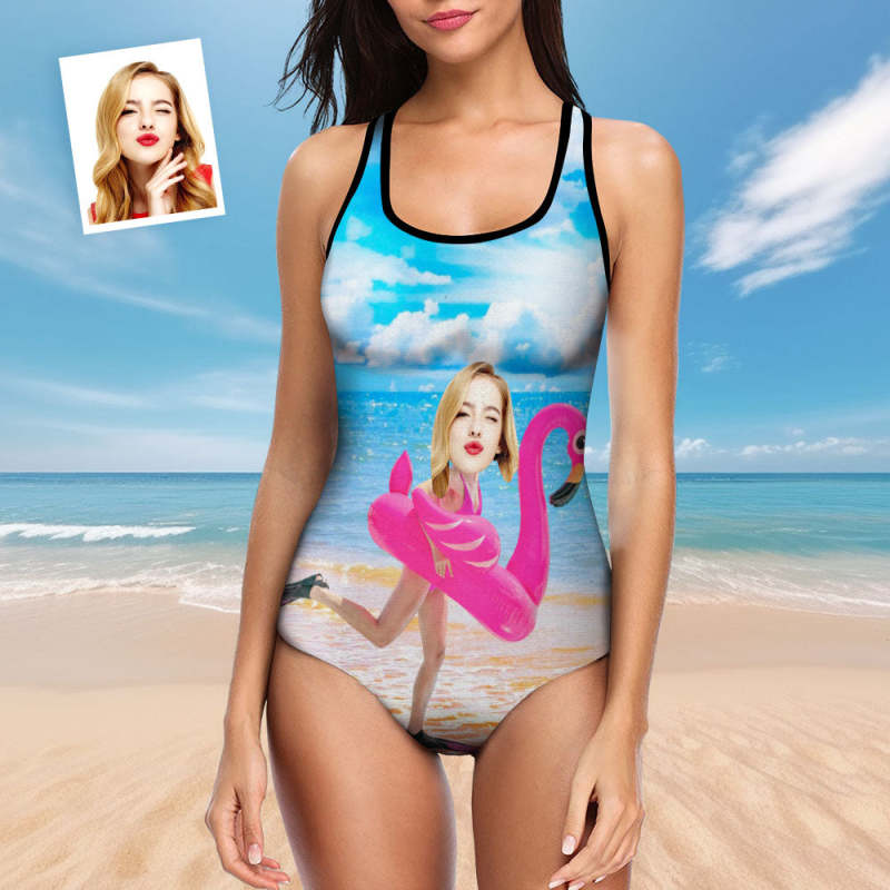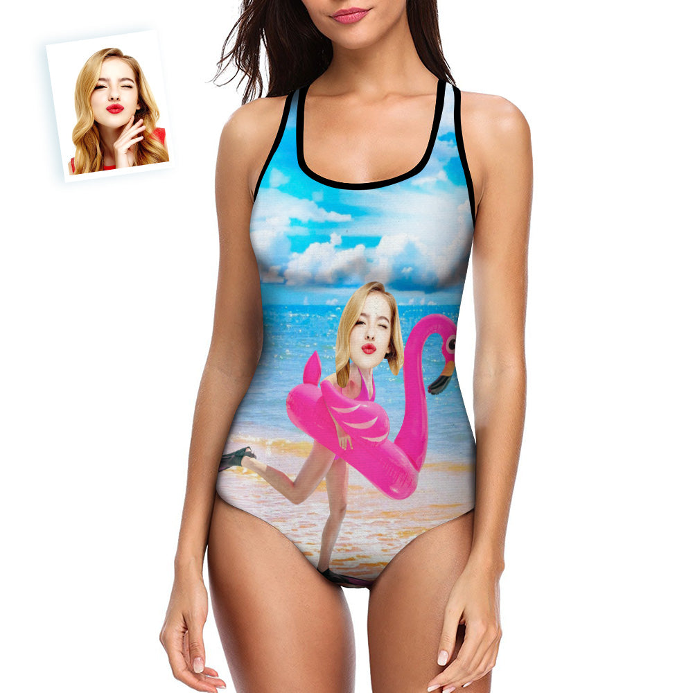 Custom One Face Swimsuit With Flamingo Funny Womens Slip Swimsuit Gifts for Her