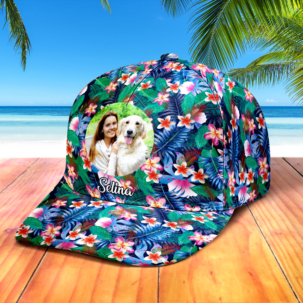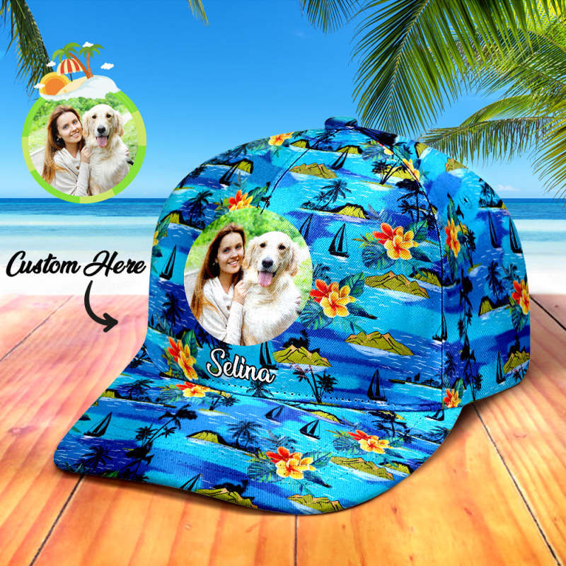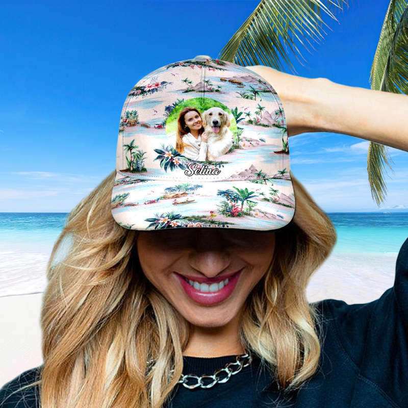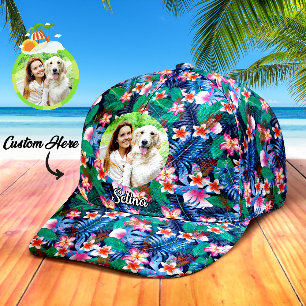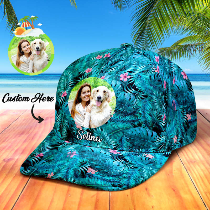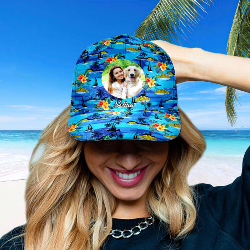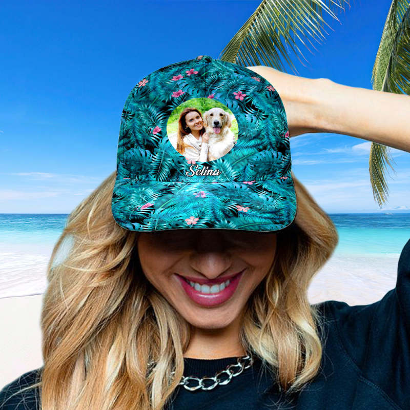 Custom Photo and Name Hawaiian Style Baseball Cap Gifts for Her