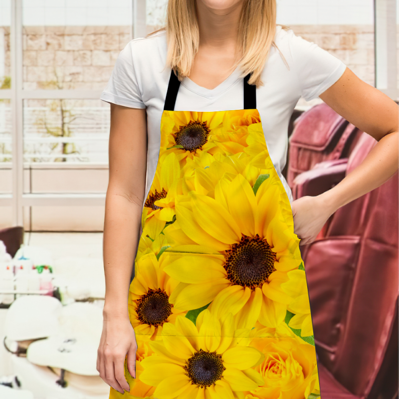 Custom Photo Apron Vivid Yellow Sunflower Gifts for Wife Waterproof