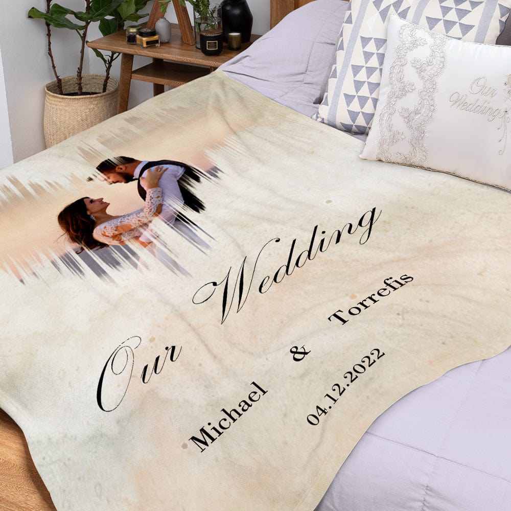 This wedding-themed blanket presents your wedding photos in another way, allowing you to customize the name, date or photo. This blanket can be used as a wedding gift or an anniversary gift. It's a very memorable gift that never goes out of style. Give it to your loved ones and the recipient will be very happy.
