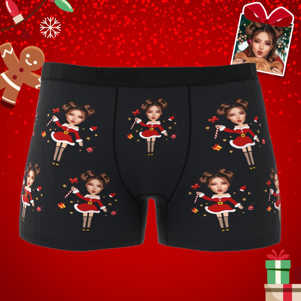 Custom Photo Boxer Santa Claus Face Underwear Couple Gifts Christmas Gift AR View