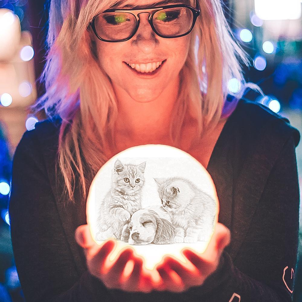Pet Sympathy Gift Photo Moon Lamp - Tap Three Colors