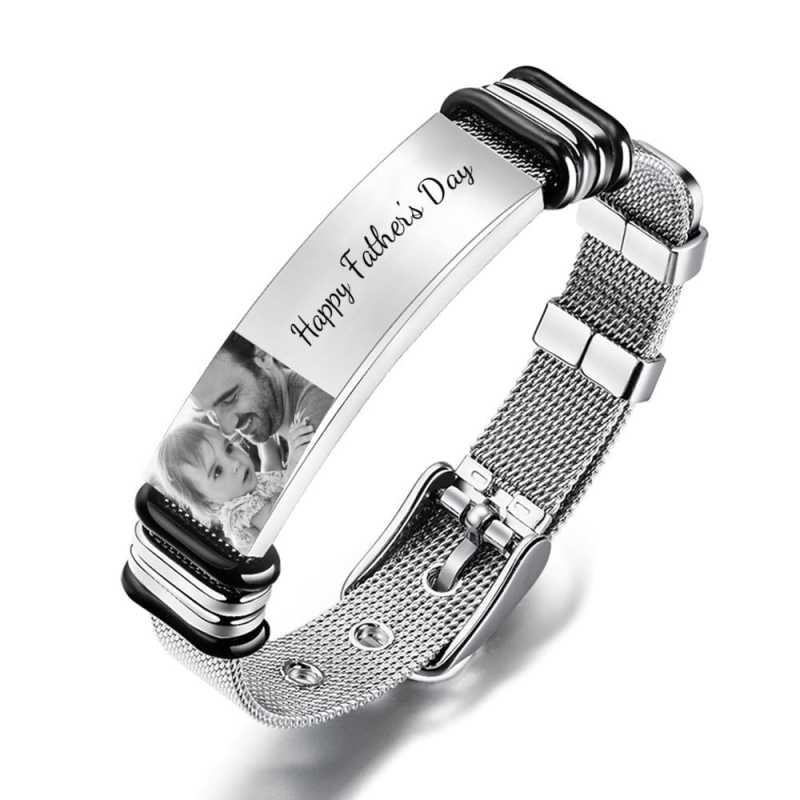 Custom Photo Engraved Bracelet Stainless Steel Best Gifts for Him Father's Day Bracelet