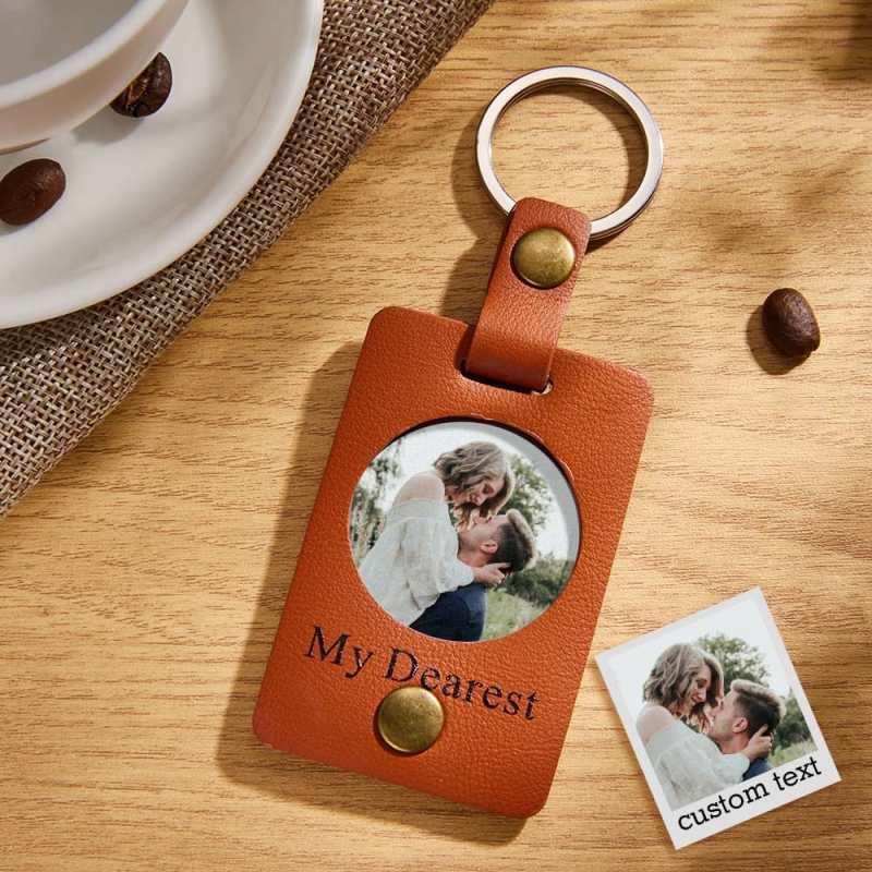 Custom Photo Engraved Keychains Simple Leather Couple Gifts