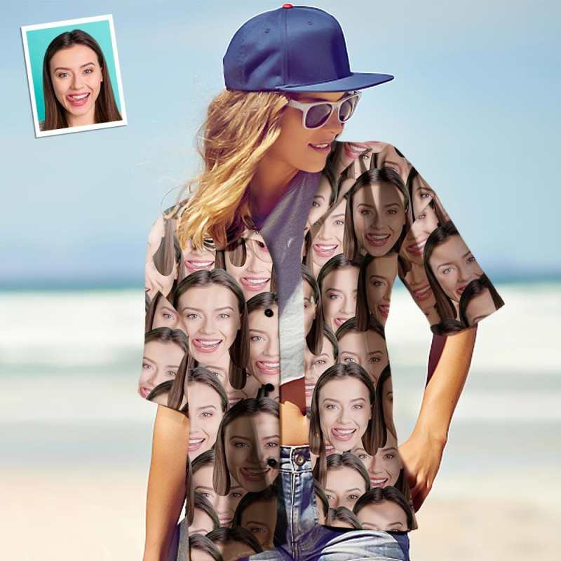 Custom Photo Hawaiian Shirt Parent-child Wears Personalised Face Hawaiian Shirt Gift Face Mash