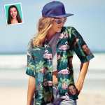 Custom Photo Hawaiian Shirt Parent-child Wears Personalised Face Hawaiian Shirt Gift Flamingo Flower