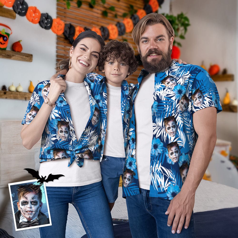 Custom Photo Hawaiian Shirt Parent-child Wears Personalised Face Hawaiian Shirt Gift for Family