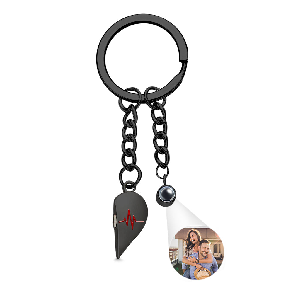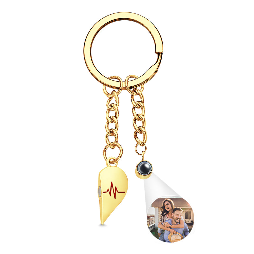 Custom Photo Heart Keychains Couple Projection Photo Magnetic Heartbeat Keyrings