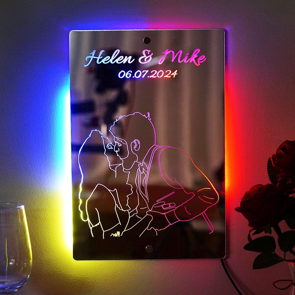 Custom Photo Line Art Mirror Light Personalized Name Mirror Light