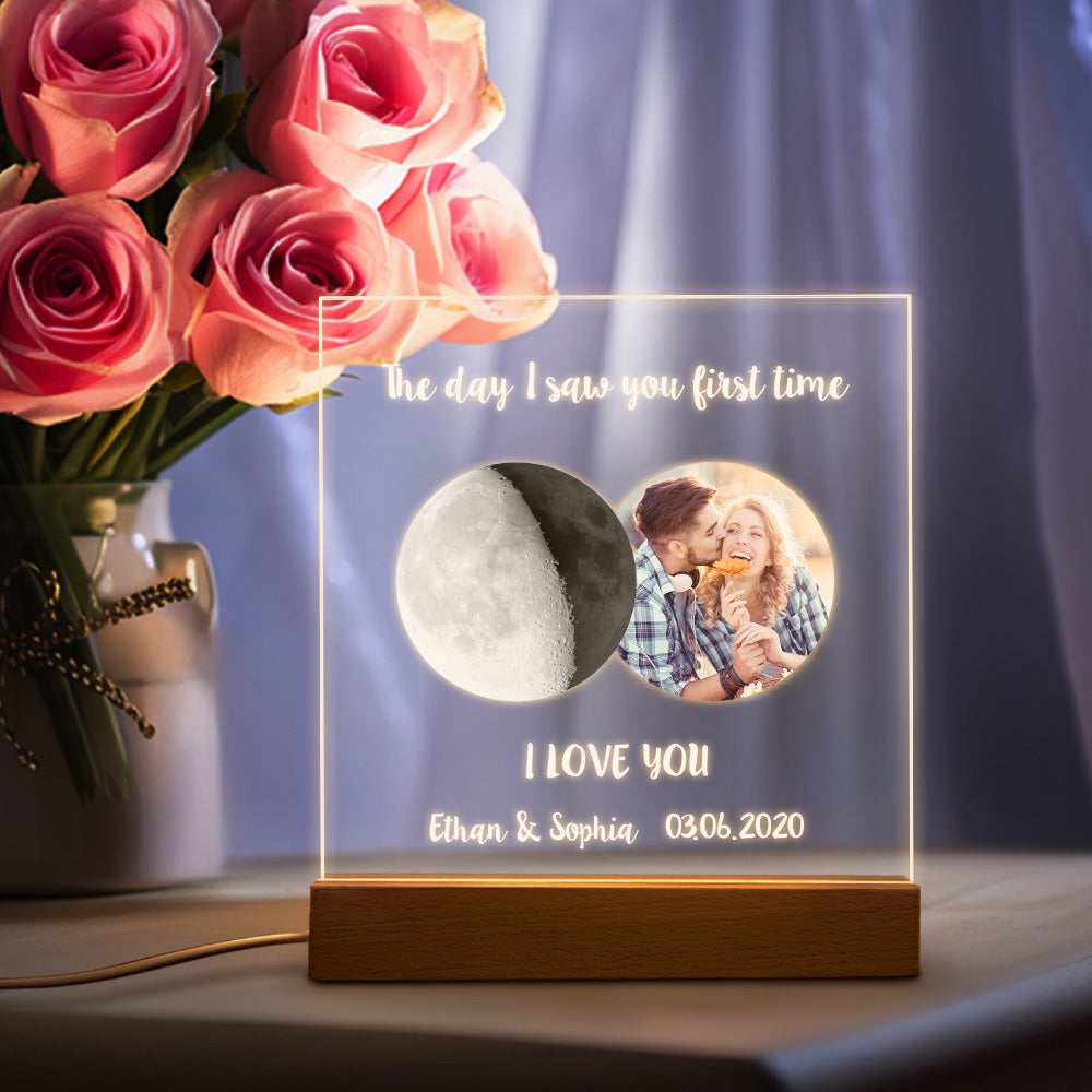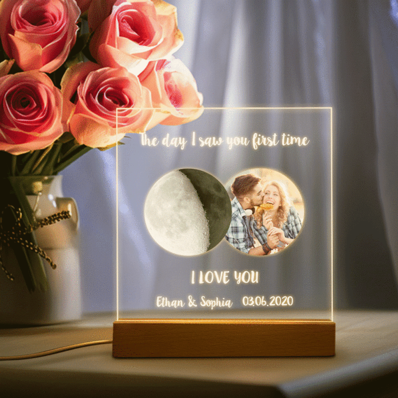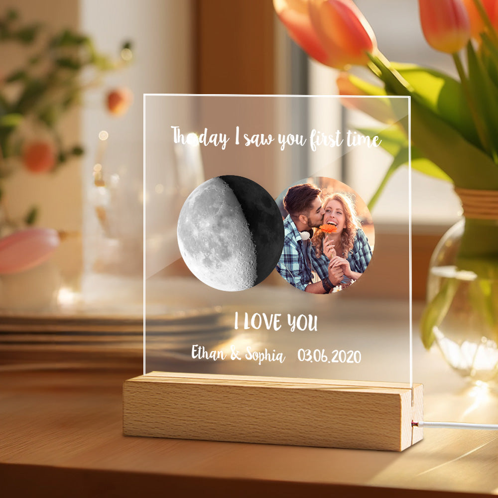 Custom Photo Moon Phase Night Light Warm Colorful LED Light Gift For Couples