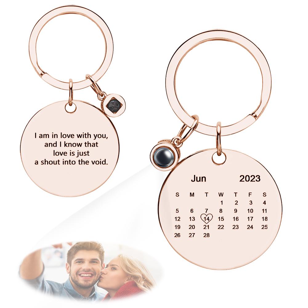 - Keep every moment close to your heart with our Custom Photo Projection Keychain Personalized Calendar with Text Key Ring! This unique accessory allows you to carry precious photos, personalized calendars, and special text with you wherever you go.
