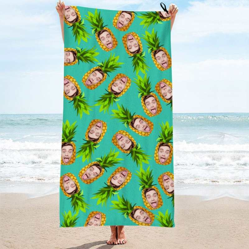 Custom Faces Pineapple Towel Personalized Photo Towel Funny Gift