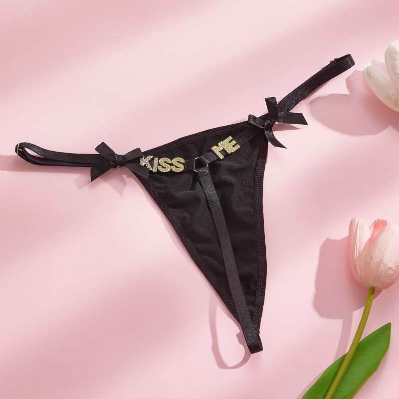 Custom Rhinestone Letter Thong Personalized Bow Tie Sexy Thong