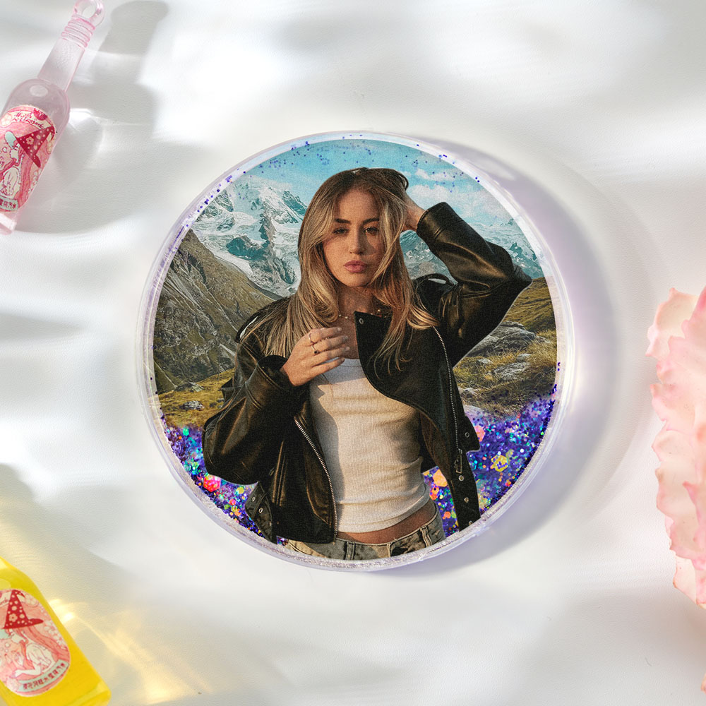 Custom Round Quicksand Fridge Magnet Personalized Photo Refrigerator Magnet for Her