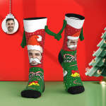 Custom Santa Claus Face Socks Funny Doll Mid Tube Socks Magnetic Holding Hands Socks Merry Christmas