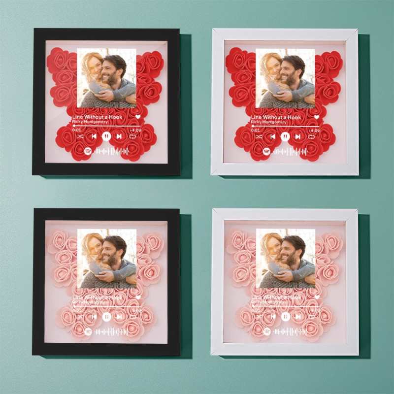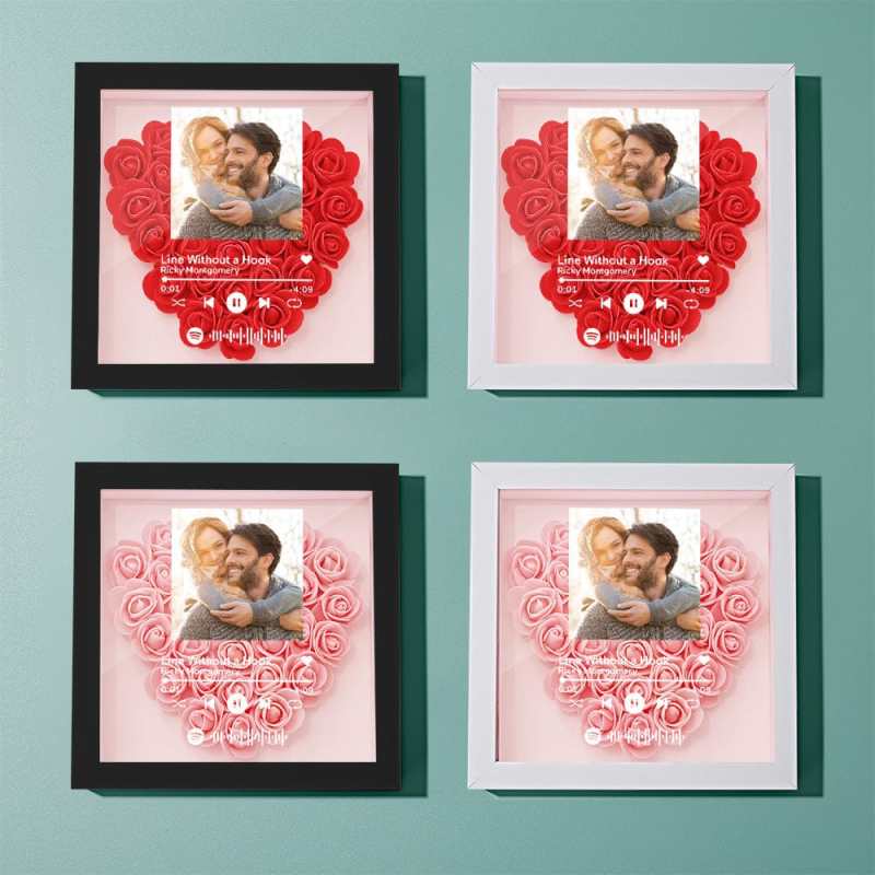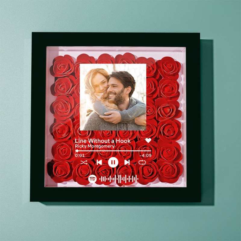 Custom Scannable Spotify Code Photo Music Flower Shadow Box Personalized Flower Shadowbox Frame Gift