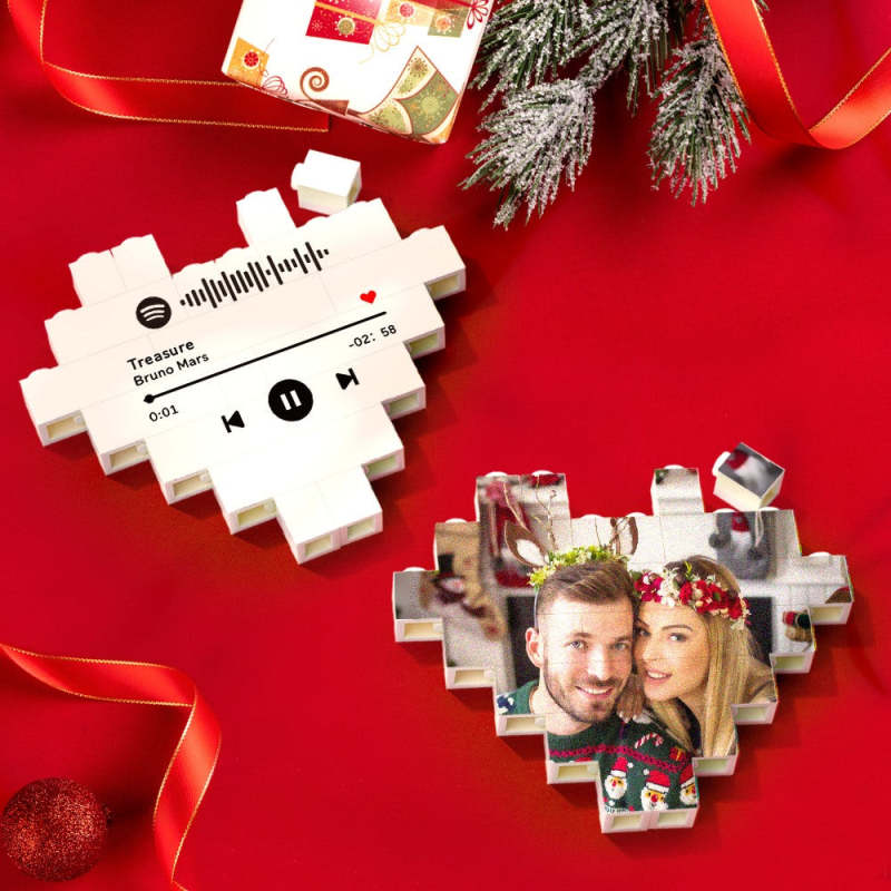 Custom Spotify Code Building Brick Personalized Photo Block Heart Shape Christmas Gifts