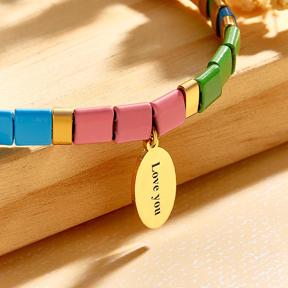 Custom Text Tila Bead Bracelet Vintage Fashion Bracelets Gift