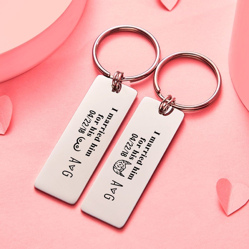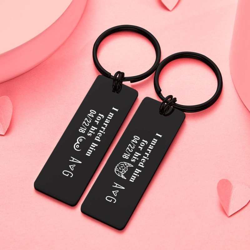 Date Keychain with Surname Initial Letter Gifts for Couples Keychain Set