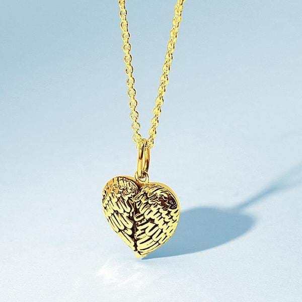 Engravable Photo Locket Necklace Gifts for Her Heart Angel Wings 3 Colors
