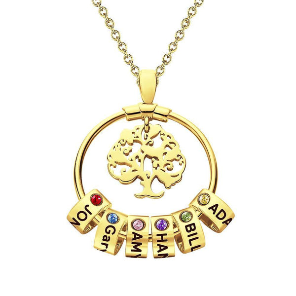 Engraved Necklace With Birthstones and Names Gifts for Family - Tree