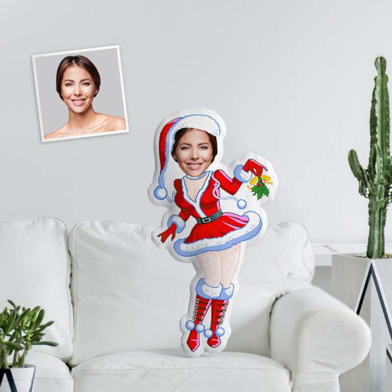 Face Pillow Santa Custom Minime Throw Pillow Personalized Christmas Girl In Red Boots Throw Pillow For Girlfriend