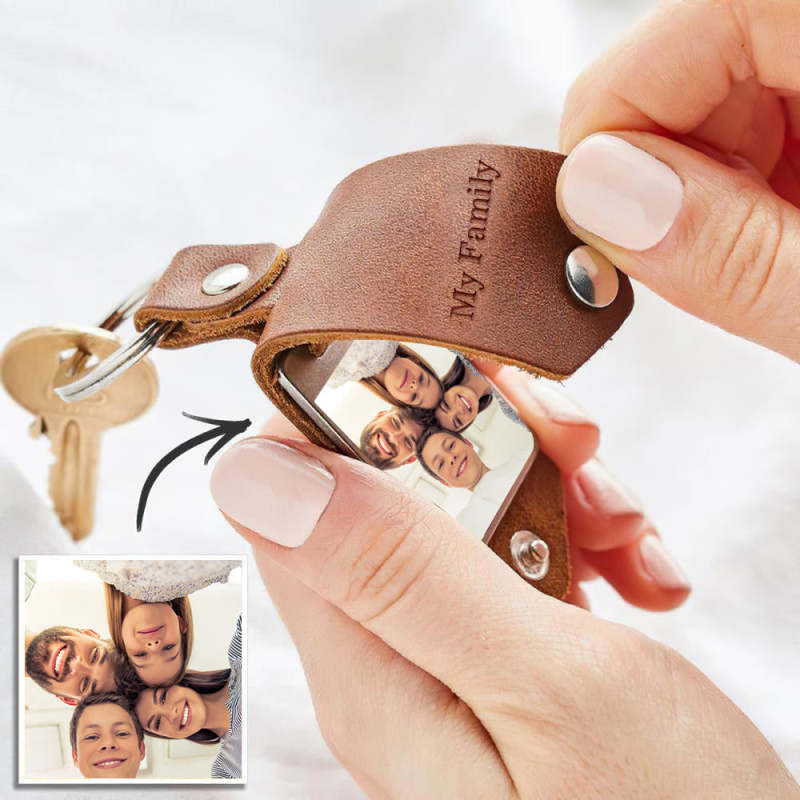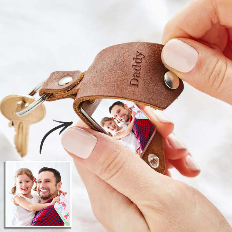 Custom Photo Keychain Engraved Keychains Leather Gifts for Dad