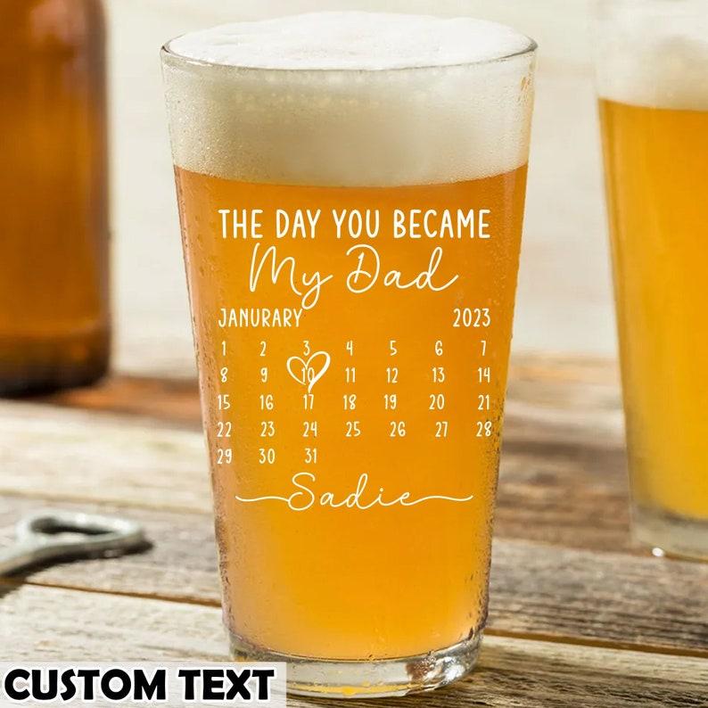 Fathers Day Gift From Daughter, Personalized Gifts For Dad, Dad Gift, Dad Birthday Gift, Personalized Beer Glass, The Day You Became My Dad