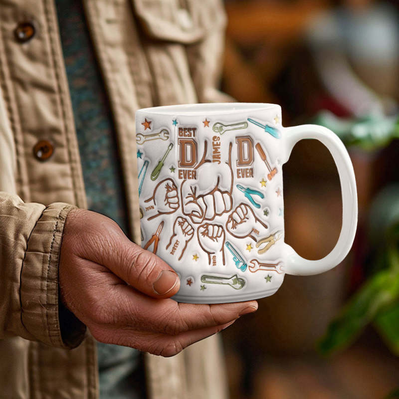 Father's Day Gifts for Dad Personalized Names Custom 1-6 Kids 3D Inflated Effect Printed Mug