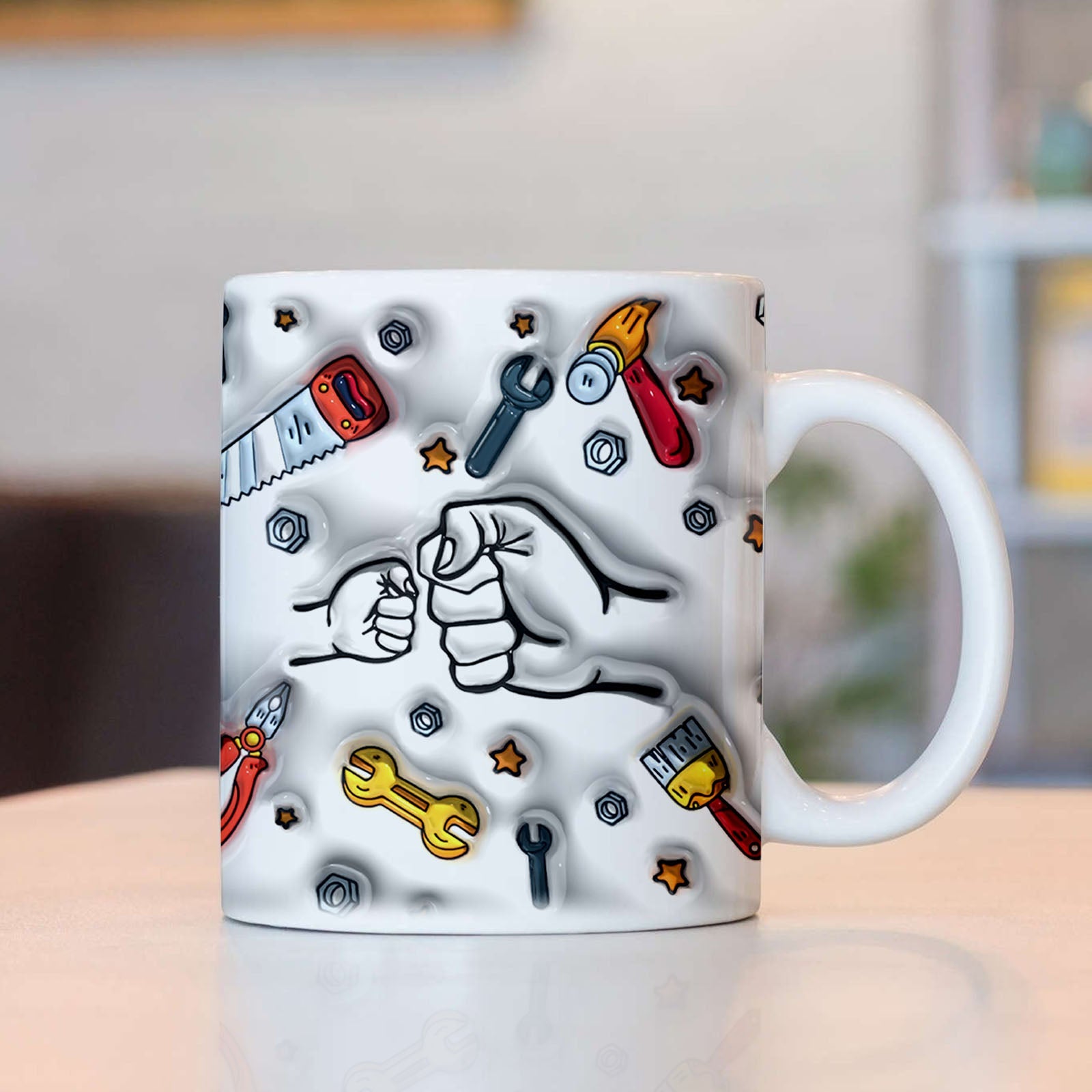 Father's Day Gifts Personalized Names Custom 3D Inflated Effect Printed Mug 1-6 Kids - Tools