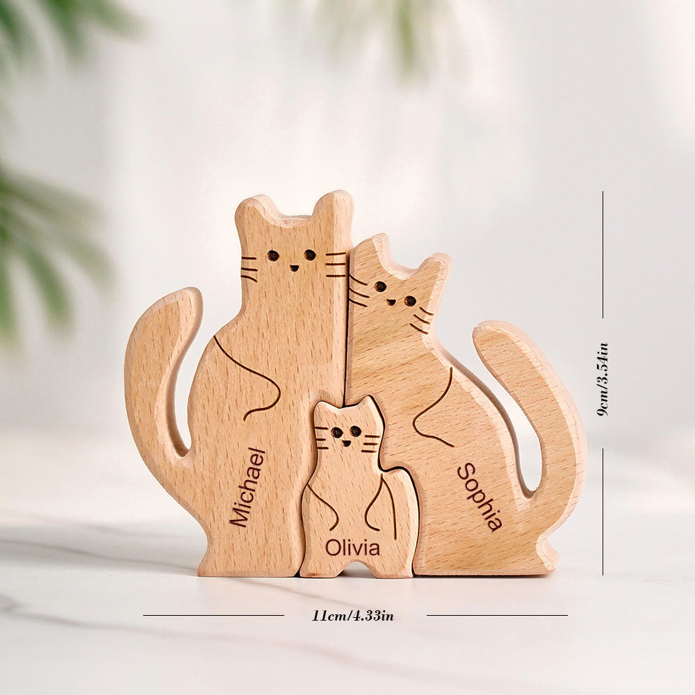 Each cat puzzle piece can be engraved with a family member's name. Each uniquely shaped piece of these personalized wooden puzzle bears brings a special family member and their love to life, making them the perfect surprise gift for any celebration.