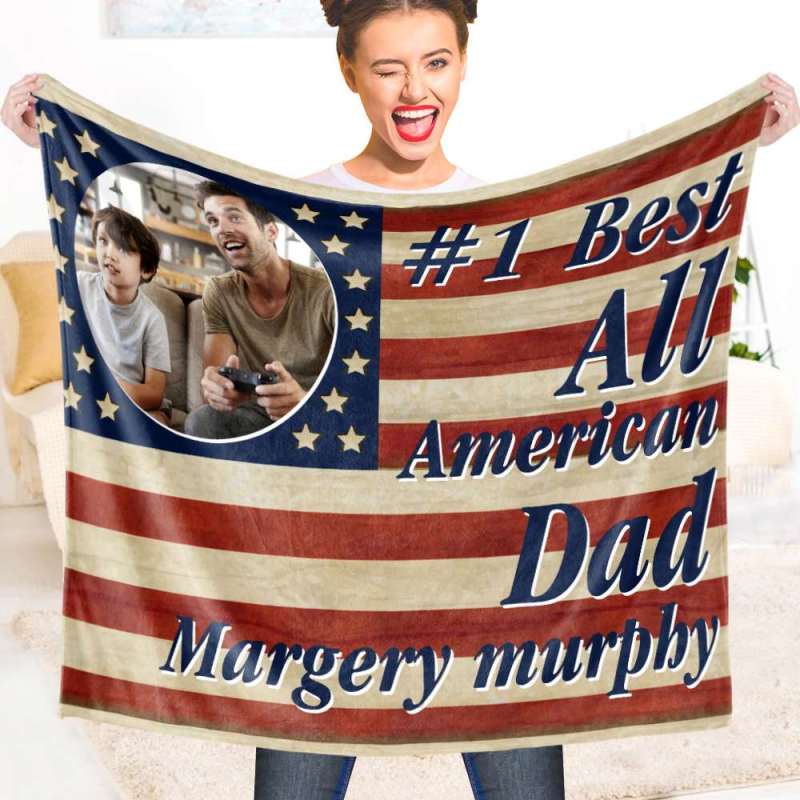 Photo Blanket 4th Of July Gifts for Dad - Best American Dad