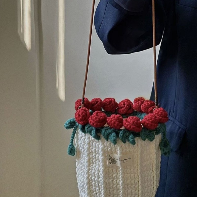Introducing our Knitted Rose Bouquet Bag, a beautifully woven bucket bag that combines the elegance of hand-knit artistry with a charming floral design. This exquisite accessory features a stunning bouquet of hand-woven roses, making it the perfect gift for mothers and girlfriends alike. Ideal for both casual outings and special occasions, the bag is not only a stylish accessory but also a thoughtful gesture that expresses love and appreciation. Elevate your gifting with this unique and delightful creation!