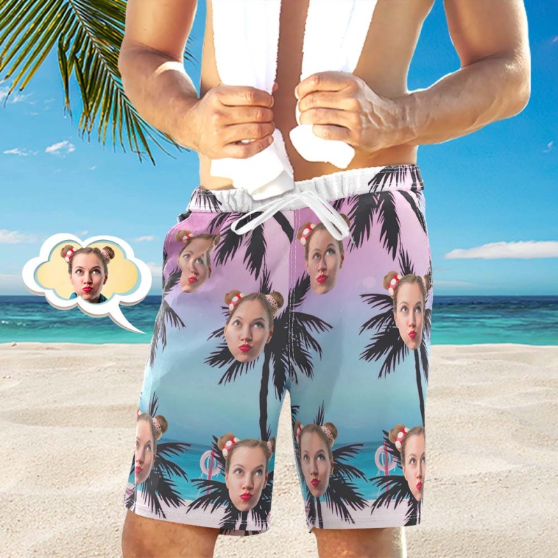 Men's Custom Face Beach Trunks All Over Print Photo Shorts Palm