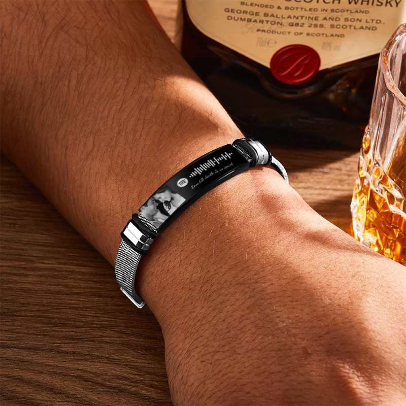 Custom the Spotify code bracelet, with engraved photos and words, choose your favorite song, photo, and words, all can be imprinted on the bracelet, and you can generate a unique Spotify code.