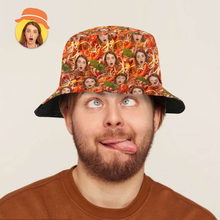 Custom Funny Bucket Hat Personalized Face Pasta Bucket Hat Summer Wide Brim Fisherman Hat Gifts
