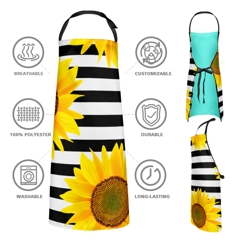 Personalized Apron Sunflowers On Striped Black and White Gifts for Mom