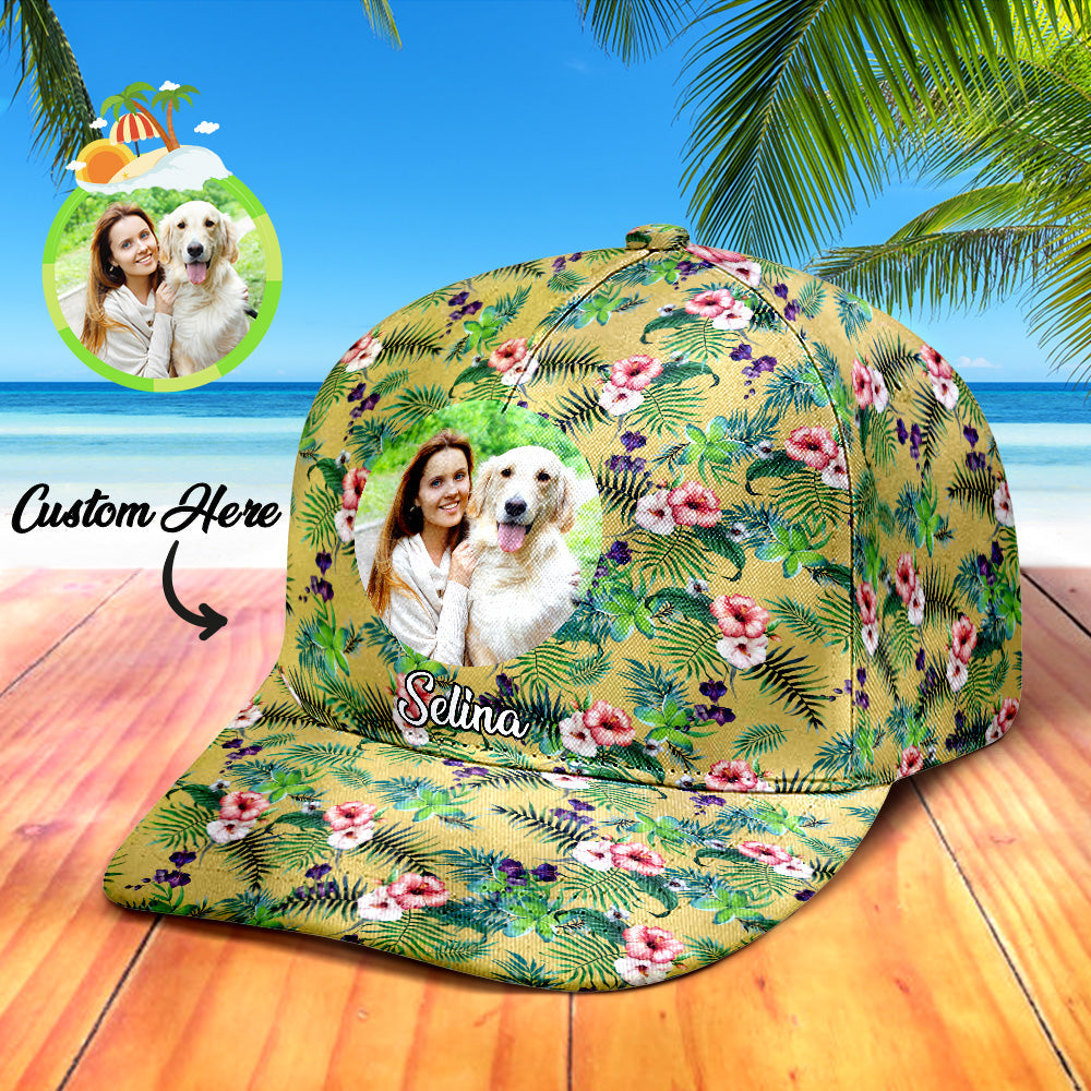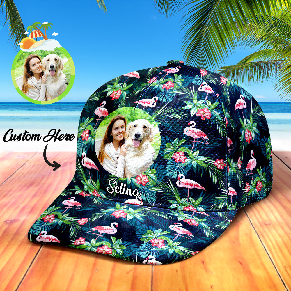 Personalized Baseball Cap with Photo and Name Hawaiian Style Gifts for Her - Flamingo