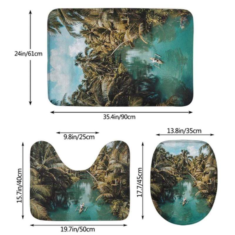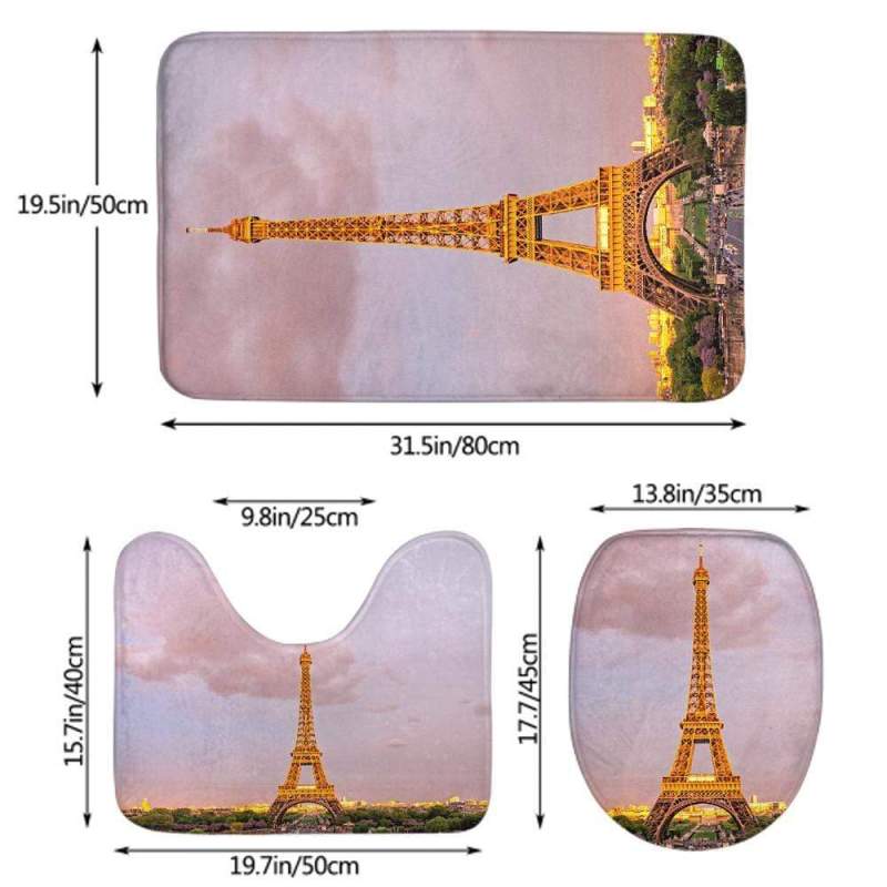 - These three-piece bathroom carpet mat sets are suitable for the bathroom, entrance door, floor, kitchen, balcony, bathroom, bedroom, living room, etc.