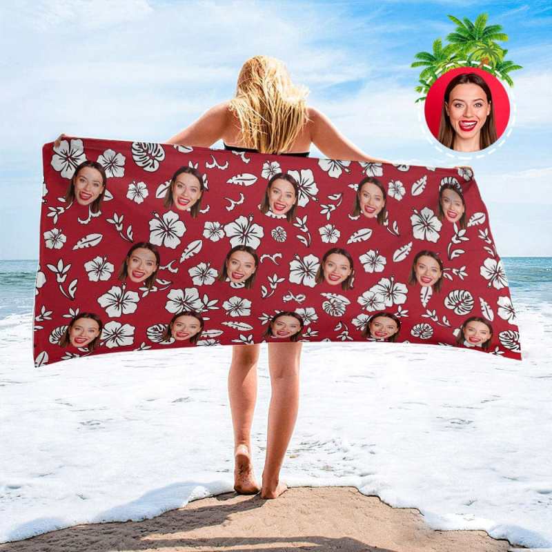 Personalized Face Beach Towel Custom Hawaiian Style Beach Towel Funny Gift