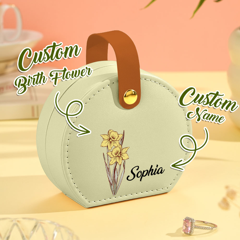 Personalized Birth Flower Jewelry Box with Name Leather Jewelry Box Birthday Gift for Her